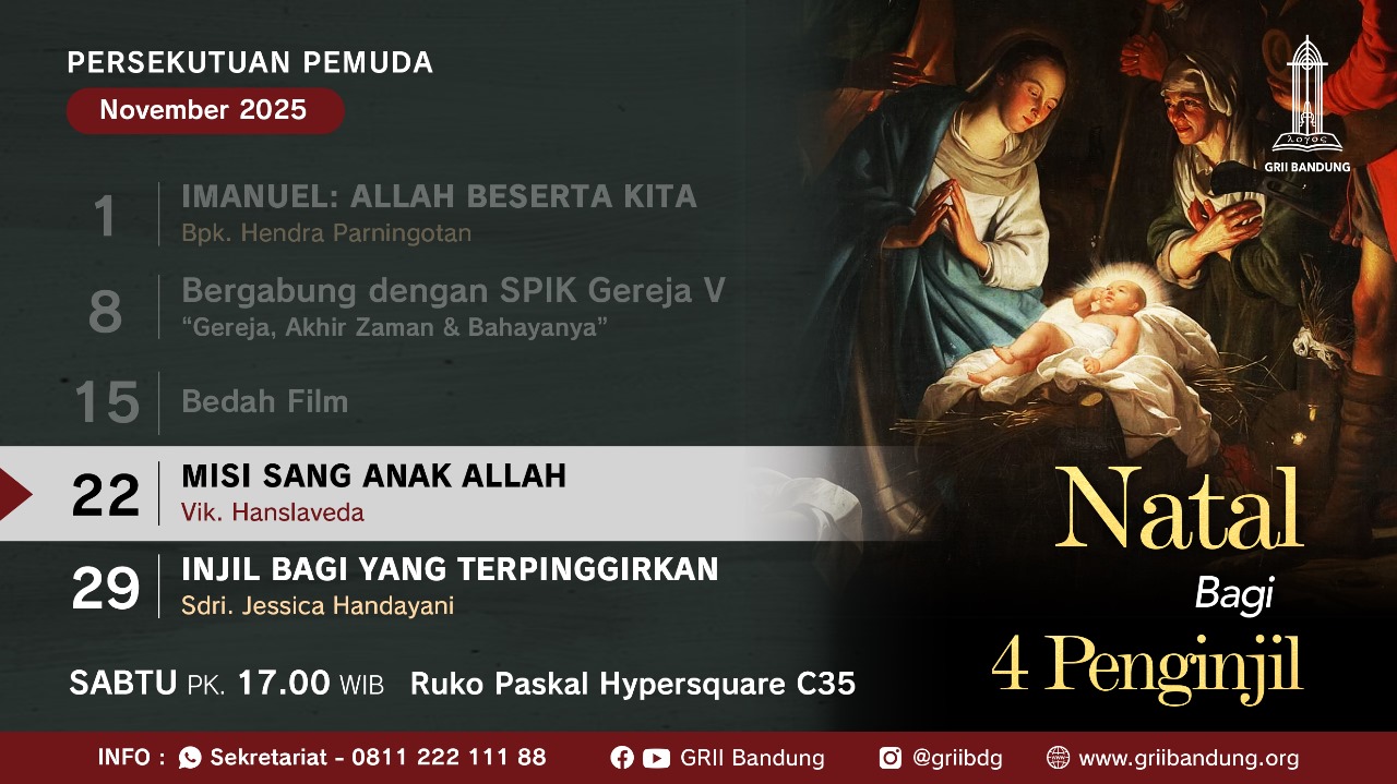 Dengan tema “Yesus & Anak-anak” oleh Vik. Hanslaveda pada Sabtu, 22 November 2025, pk. 13.00 WIB. Streaming: griibdg.org/live
