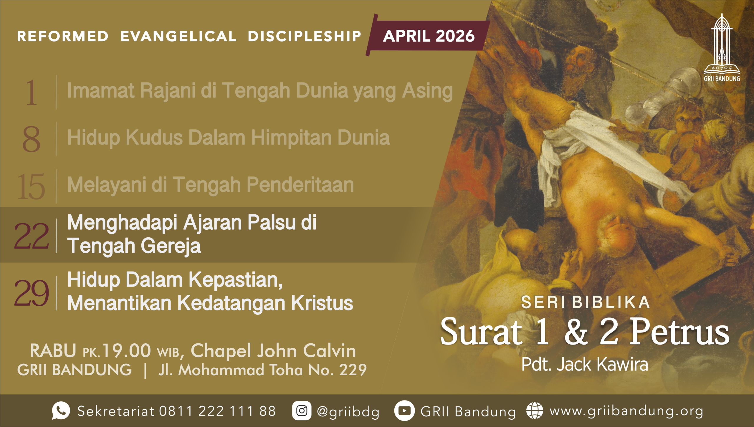 Dengan tema “Menghadapi Ajaran Palsu di Tengah Gereja” oleh Pdt. Jack Kawira, pada hari Rabu, 22 April 2026, pk. 19.00 di GRII Bandung Jl. Moh. Toha no. 229. Info: Sekretariat 0811-222-111-88