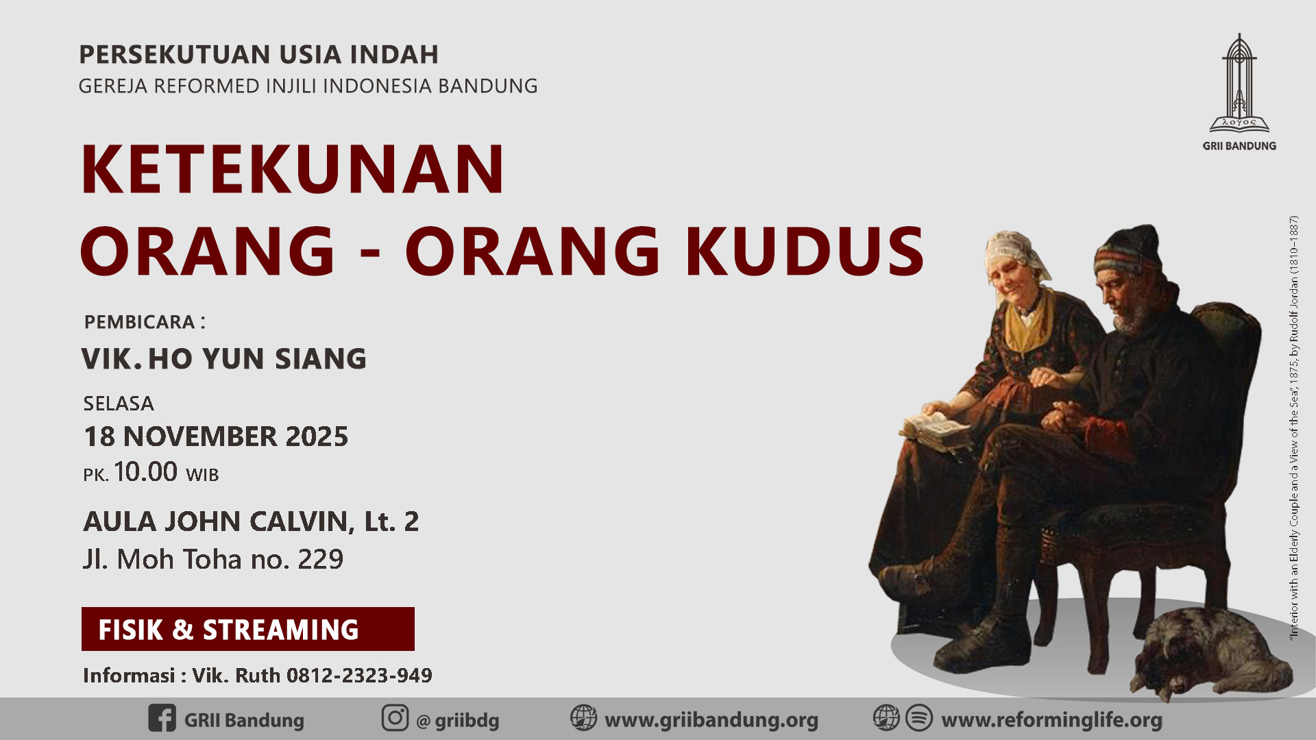 Dengan tema “Ketekunan Orang-orang Kudus” oleh Vik. Ho Yun Siang pada hari Selasa, 18 November 2025, pk. 10.00 di GRII Bandung Jl. Moh. Toha no. 229. Info: Sekretariat 0811-222-111-88