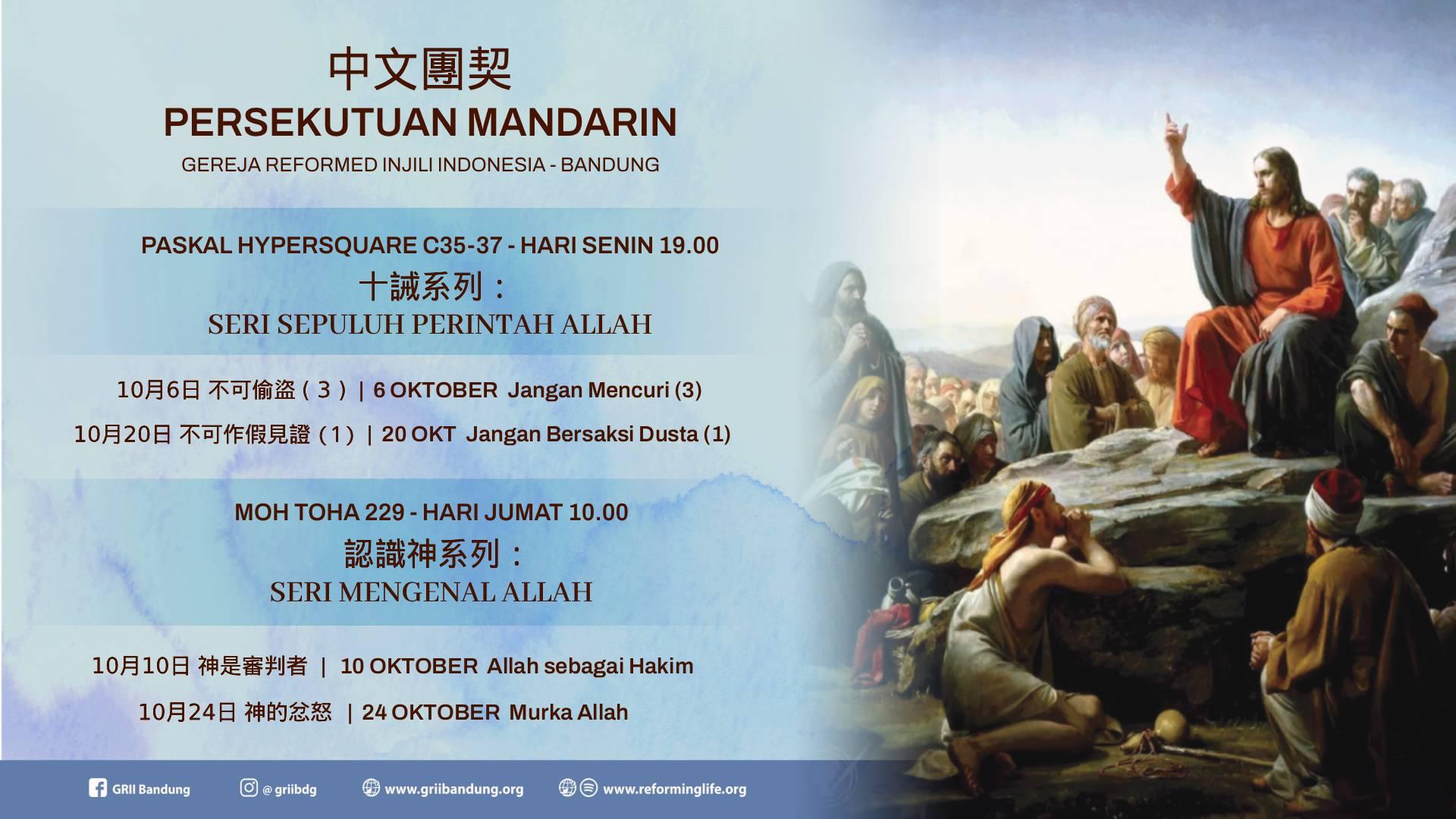 Dengan tema “Seri 10 Perintah Allah: Jangan Bersaksi Dusta (1)” oleh Vik. Liu Zijun pada hari Senin, 20 Oktober 2025, pk. 19.00 di Paskal Hyper Square Blok C 35. Hanya fisik. Info: 0811-2221-1188 (WA)